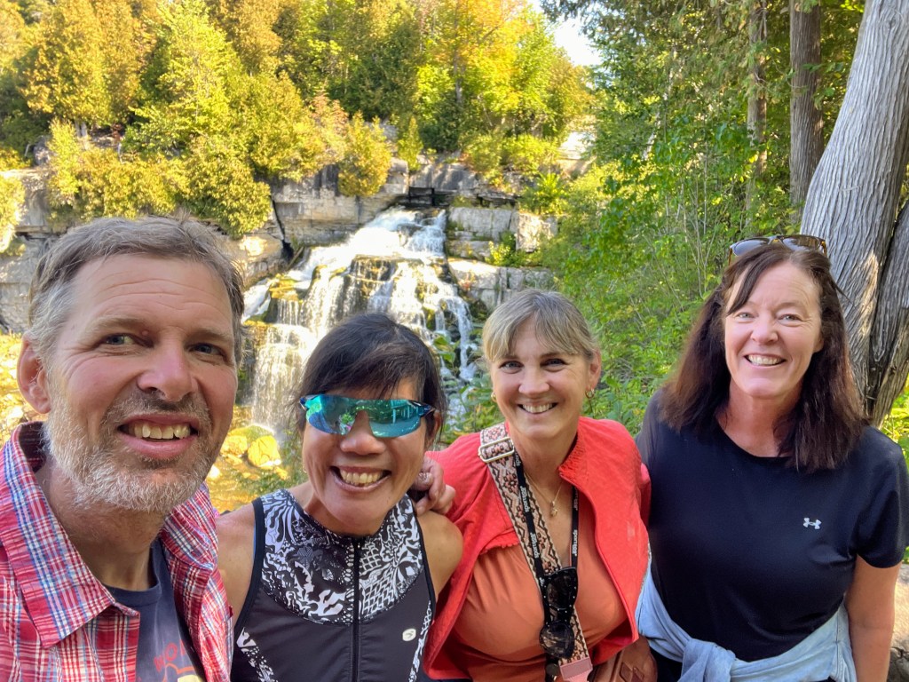 We headed up – and I mean up – to Inglis Falls. Diana’s Wahoo – the one that warns us when we are going up what it considers a big climb – did it’s little din-din-ding three times on the way to the falls. It being lunchtime, and me saving my lunch until we got to the falls, meant that I was struggling pretty badly on the way up.