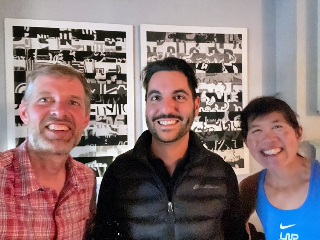 (Kind of a fun moment when we arrived at David’s place. Diana did an amazing job finding an AirBnB that was in a great location, had a place to stow our bikes, and is otherwise very nice. But, uncharacteristically for her – with her generally top-notch planning skills – what she didn’t realize is that David would be there and that this was a shared space. So when we opened the door – looking forward to collapsing instantly – and David was there: “Suprise!” – there was a brief moment of confusion until David realized that we were, indeed, surprised, and told us that it was a shared space.)